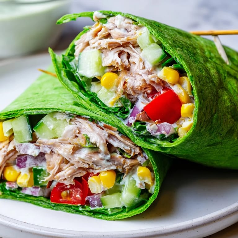 I brought these wraps to a picnic once, wrapped tightly in parchment and stacked in a container, and they held up beautifully even after an hour in the sun. A friend asked if I'd bought them from some trendy wrap place downtown. That compliment stuck with me because it proved that simple, thoughtful combinations can compete with anything store-bought. The spinach tortillas add a subtle earthiness that regular flour wraps just don't have, and the pops of corn and tomato make every bite feel a little different. It's one of those recipes that quietly impresses without trying too hard.