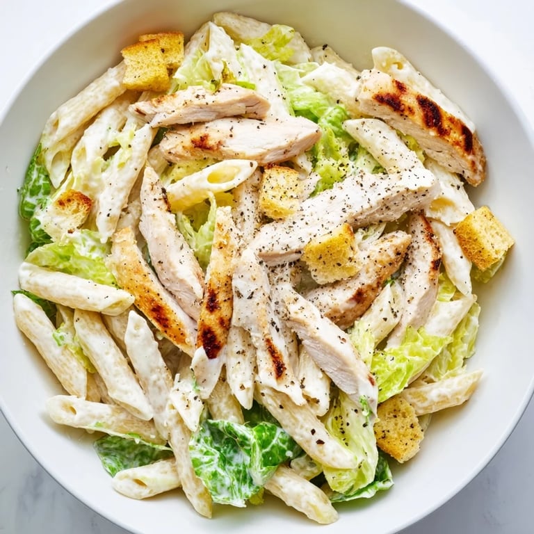 For vegetarian, use grilled tofu or chickpeas. For pescatarian, swap in grilled shrimp or white fish. Use gluten-free pasta and croutons for celiac concerns. Dairy-free options include plant-based Caesar dressing and nutritional yeast instead of Parmesan.