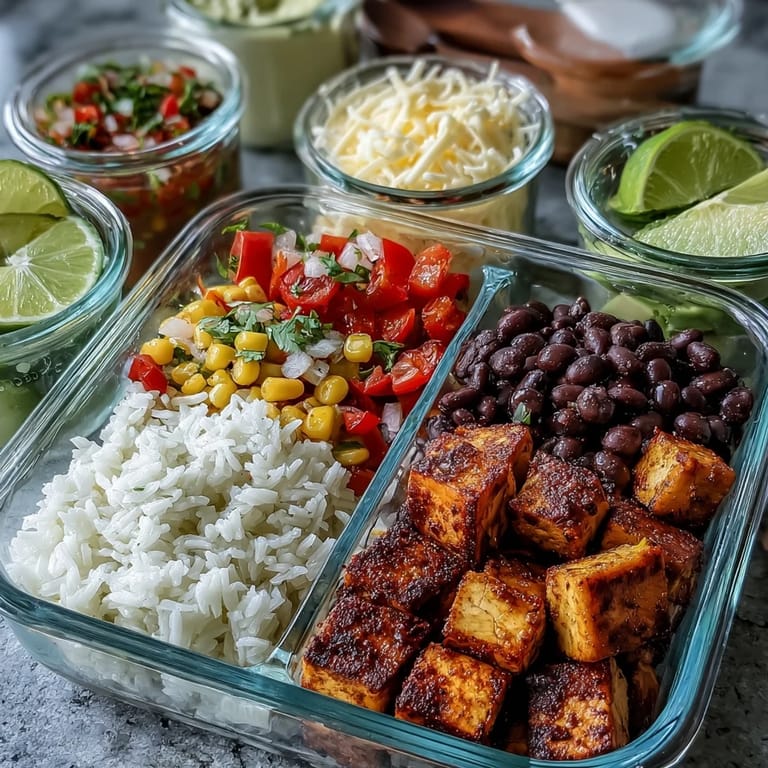 - Cheese, salsa, sour cream, avocado, cilantro, and lime wedges all go into their own small containers, waiting to be added only when you're ready to eat. This is the secret that keeps your bowl feeling fresh and intentional instead of like something that's been sitting in your fridge for three days.
