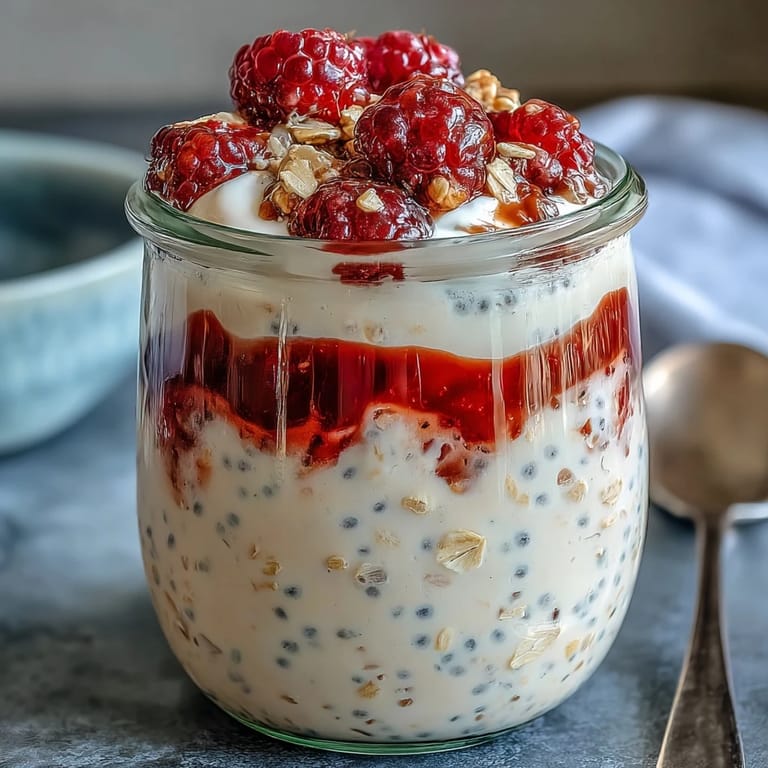 Save to Pinterest There's something magical about waking up to breakfast already waiting for you, no morning scramble required. I discovered overnight oats by accident one rushed Tuesday when I'd stayed up too late the night before—I threw together whatever was in my pantry and grabbed the jar on my way out the door. By lunchtime, curiosity got the better of me, and when I finally opened that container, the oats had transformed into something creamy and comforting. Now I make them deliberately, layering raspberries and chia seeds like I'm tucking ingredients into a time capsule that will turn into breakfast while I sleep.