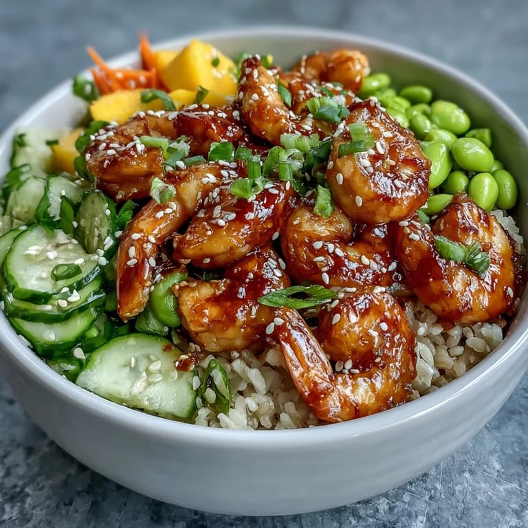 I made this for my partner after a long day when neither of us wanted to think too hard about dinner, and he was genuinely impressed by how fresh and bright it tasted. The way the warm shrimp cooled against the chilled rice and vegetables, with that little kick of sriracha cutting through the sweetness—it became our go-to weeknight meal. Now he requests it whenever he wants to feel like we're eating somewhere beachy and intentional, even though we're just at our kitchen table.