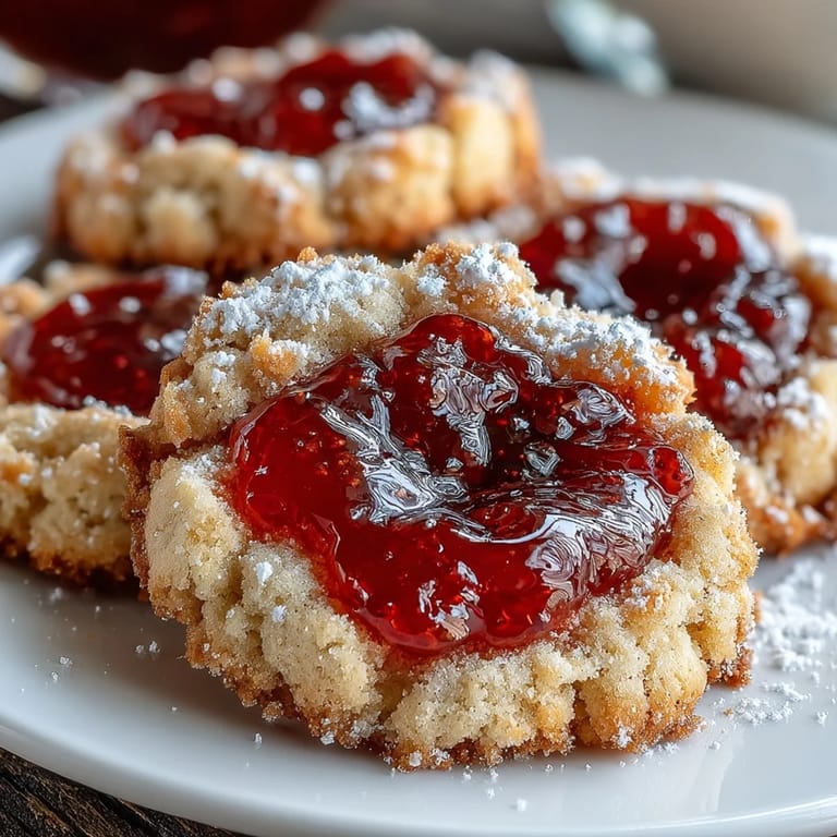 Save to Pinterest The beauty of thumbprint cookies lies in their charming simplicity. Unlike fussy layered desserts or temperamental French pastries, these cookies welcome bakers of all skill levels with open arms. The buttery shortbread base requires no chilling before shaping, and the signature indentation—made with nothing more than your thumb—adds a personal, handcrafted touch that makes each cookie unique. As they bake, your kitchen fills with the comforting aroma of butter and vanilla, while the jam glistens and sets into ruby-red pools of sweetness. The result is a cookie that looks bakery-worthy but feels wonderfully homemade.