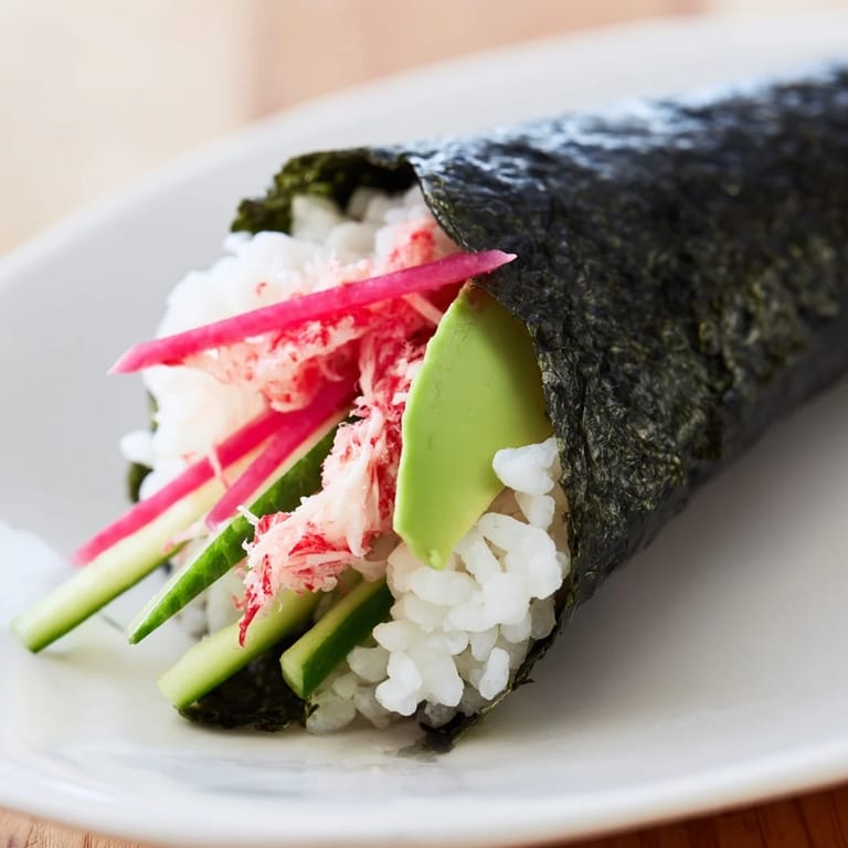 Save to Pinterest My sister called me in a panic from her apartment kitchen, asking if I could teach her how to make sushi rolls without a mat because she'd promised her coworkers something special for lunch. Twenty minutes later, we were laughing at our first lumpy cone attempts, but by roll number three, something clicked—the nori crackling softly as we shaped it, the cool avocado giving way under gentle pressure. That's when I realized hand rolls aren't about perfection; they're about the tactile joy of building something delicious in your palm.