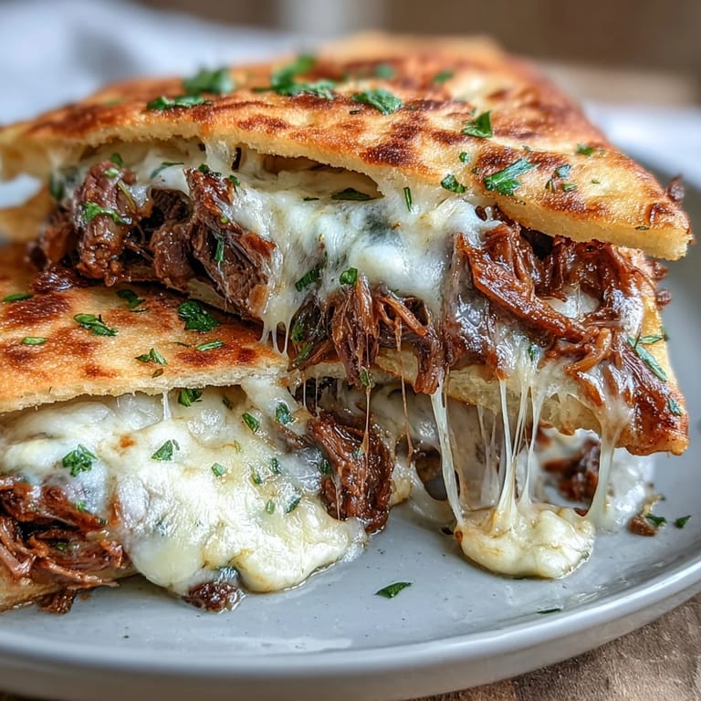 Save to Pinterest The Slow Cooker Beef & Garlic Naan Melt is the ultimate comfort food fusion. This recipe takes the soul-warming essence of a classic Sunday pot roast and transforms it into a decadent, handheld meal by pairing fork-tender shredded beef with soft, garlicky naan and layers of melted cheese. Inspired by the French dip, this dish is served with its own rich braising liquid for a truly indulgent experience.