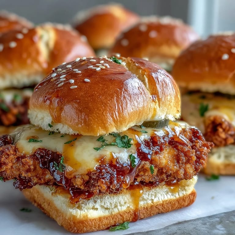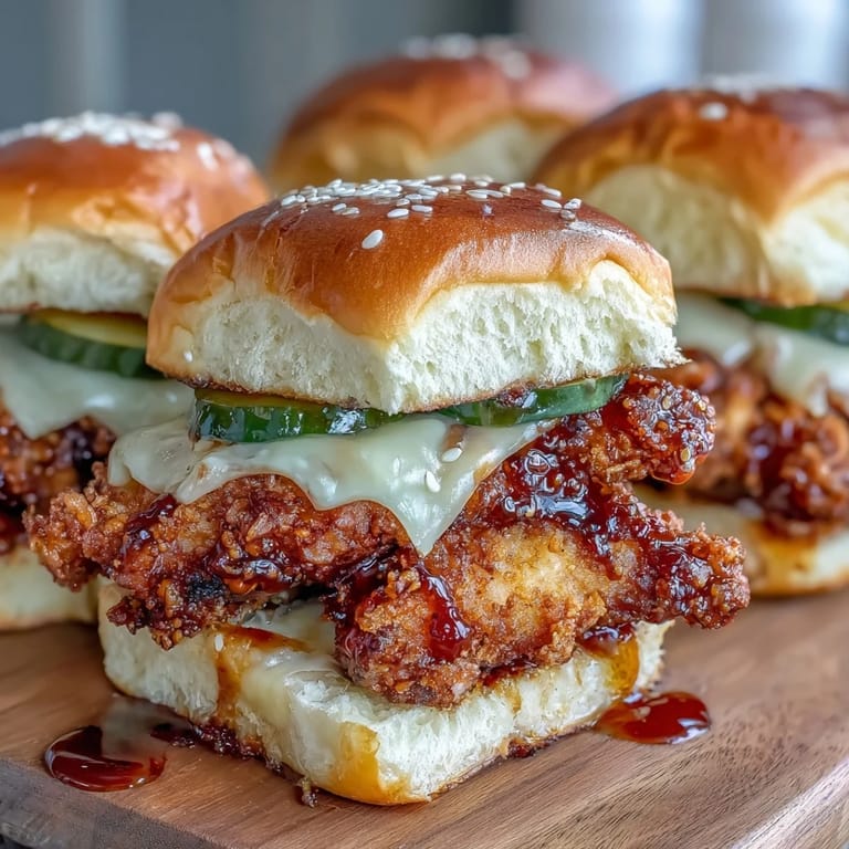 Save to Pinterest Experience all the crunch and flavor of a spicy chicken sandwich transformed into a crowd-pleasing pull-apart bake. This recipe features crispy baked chicken tenders smothered in a rich hot honey butter, layered with tangy dill pickles and melted sharp cheddar cheese inside soft slider buns. It is the perfect easy-to-make dish for game day or any casual gathering.